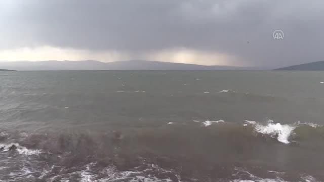 Ardahan'da etkili olan şiddetli rüzgar ve sağanak sonrası Çıldır Gölü'nde dalgalar oluştu.