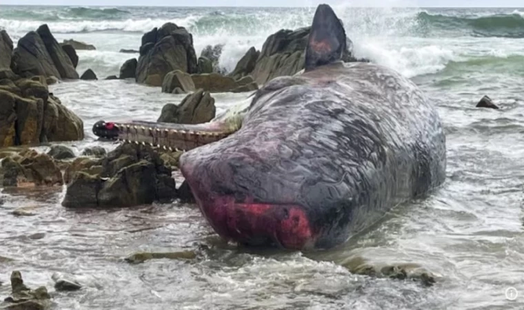 Avustralya'da karaya vuran ispermeçet balinası öldü