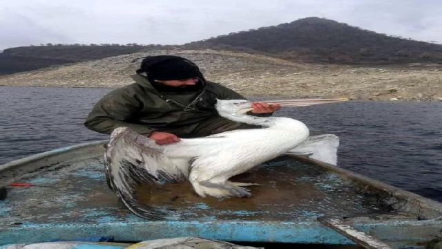 Manisa'nın Salihli ve Köprübaşı ilçeleri arasında yer alan Demirköprü Baraj Gölü'nde balıkçı ağına takılan bir pelikan, Doğa Koruma ve Milli Parklar Şefliği ekiplerince kurtarıldı.