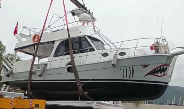 Datça ilçesinde deniz turizminde faaliyet gösteren tekneler, kışlık bakımları tamamlanarak denize indirilmeye başlandı.
