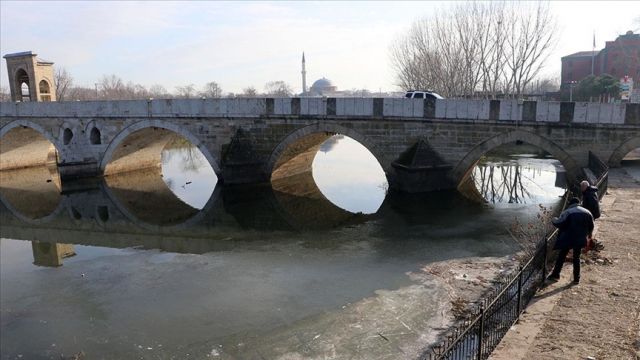 Hava sıcaklığının gece zaman zaman sıfırın altında 10 dereceye düştüğü kentte, Tunca Nehri'nin yüzeyi buzla kaplandı.