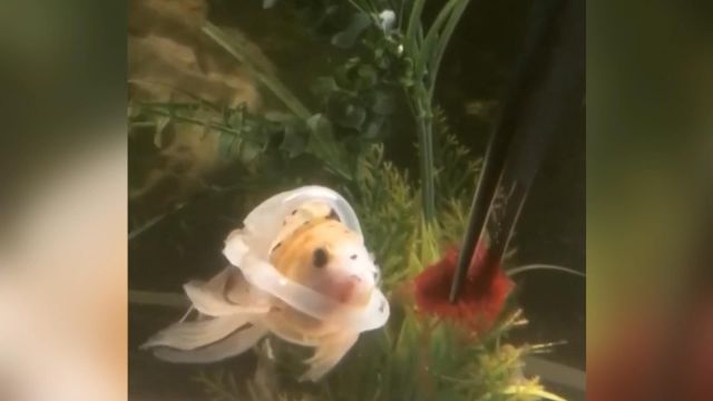Yüzme kesesindeki sorun nedeniyle hareket edemeyen Japon balığı, özel olarak tasarlanan can yeleğiyle yeniden yüzmeye başladı.