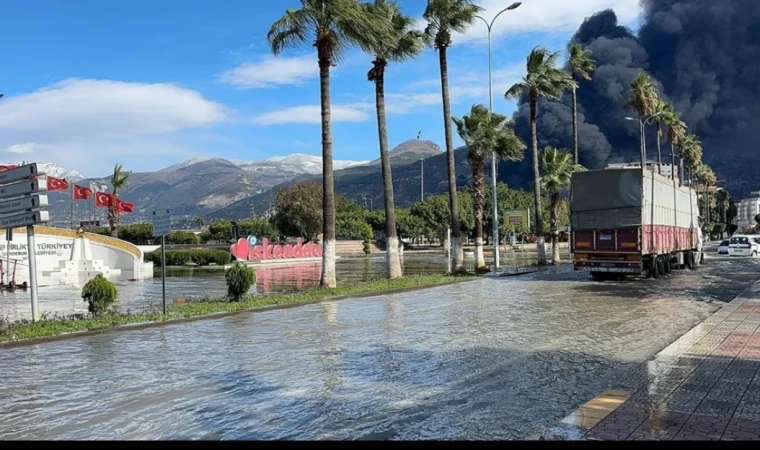 Kahramanmaraş merkezli depremlerden etkilenen Hatay'ın İskenderun ilçesinde, deniz seviyesinin yükselmesi sonucu bazı caddeler su altında kaldı.