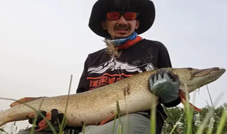 Kırklareli'nde amatör balıkçı 1 metre uzunluğunda turna balığı tuttu