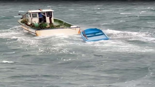 Lodosta sürüklenen sandalı batmaktan balıkçılar kurtardı