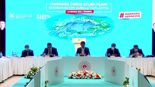 Marmara Denizi Koruma Eylem Planı Koordinasyon Kurulu, Cumhurbaşkanlığı Dolmabahçe Çalışma Ofisi'nde ikinci kez bir araya geldi. Toplantı basına kapalı olarak başladı. Çevre ve Şehircilik Bakanı Murat Kurum'un başkanlığında gerçekleştirilen toplantıya, Çevre ve Şehircilik Bakan Yardımcısı Mehmet Emin Birpınar, İçişleri Bakan Yardımcısı İsmail Çataklı, Sağlık Bakanı Yardımcısı Tolga Tolunay, Sanayi ve Teknoloji Bakan Yardımcısı Hasan Büyükdere, Tarım ve Orman Bakan Yardımcısı Akif Özkaldı, Ulaştırma ve Altyapı Bakan Yardımcısı Selim Dursun, Türk Deniz Kuvvetleri Komutanlığı Seyir, Hidrografi ve Oşinografi Daire Başkanı Deniz Albay Hakan Kuşlaroğlu, İstanbul Valisi Ali Yerlikaya, Kocaeli Valisi Seddar Yavuz, Bursa Valisi Yakup Canbolat, Balıkesir Valisi Hasan Şıldak, Tekirdağ Valisi Aziz Yıldırım, Yalova Valisi Muammer Erol, Çanakkale Valisi İlhami Aktaş, TÜBİTAK ve Marmara Belediyeler Birliği Bilim ve Teknik Kurulu Başkanı Prof. Dr. Hasan Mandal, TÜBİTAK-MAM Başkanı Dr. Osman Okur, Türkiye Bilimler Akademisi Başkanı Prof. Dr. Muzaffer Şeker, ODTÜ Deniz Bilimleri Enstitüsü Müdürü Prof. Dr. Barış Salihoğlu, İstanbul Üniversitesi Su Bilimleri Fakültesi Dekanı Prof. Dr. Melek İşinibilir Okyar, Marmara Belediyeler Birliği ve Kocaeli Büyükşehir Belediye Başkanı Doç. Dr. Tahir Büyükakın, İstanbul Büyükşehir Belediye Başkanı Ekrem İmamoğlu, Bursa Büyükşehir Belediye Başkanı Alinur Aktaş, Balıkesir Büyükşehir Belediye Başkanı Yücel Yılmaz, Tekirdağ Büyükşehir Belediye Başkanı Kadir Albayrak, Yalova Belediye Başkanı Mustafa Tutuk, Çanakkale Belediye Başkanı Ülgür Gökhan, TOBB Başkanı Rifat Hisarcıklıoğlu, Organize Sanayi Bölgeleri Üst Kuruluşu Başkanı Memiş Kütükcü, Türkiye Çevre Ajansı Başkanı Eyyüp Karahan, İMEAK Deniz Ticaret Odası Başkanı Tamer Kıran, Türkiye Gemi İnşa Sanayicileri Birliği Başkanı Murat Kıran, Deniz Temiz Derneği (TURMEPA) Başkanı Şadan Kaptanoğlu, Türkiye Çevre Koruma Vakfı (TÜÇEV) Yönetim Kurulu Başkanı Gürkan Büyükkaralı ve ilgili kurum temsilcileri katıldı. Bakan Kurum'un toplantının ardından basın açıklaması yapması bekleniyor.