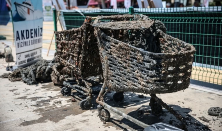 Mersin'de deniz dibinden alışveriş sepeti, halat ve çanak anten çıktı