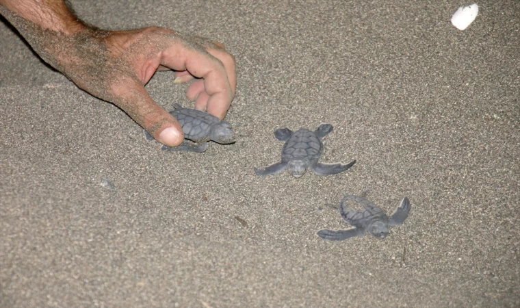 Mersin'in Erdemli ilçesinde, sahildeki yuvalarından çıkan 100 caretta caretta türü kaplumbağa yavrusu denizle buluştu.