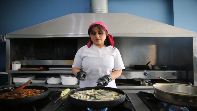 Mardin'de devlet desteğiyle balık restoranı açan, müşterilerinin "Balıkçı Azize" diye hitap ettiği Süheyla Dağ, pişirdiği taze balıklarla müşterilerini ağırlıyor.
