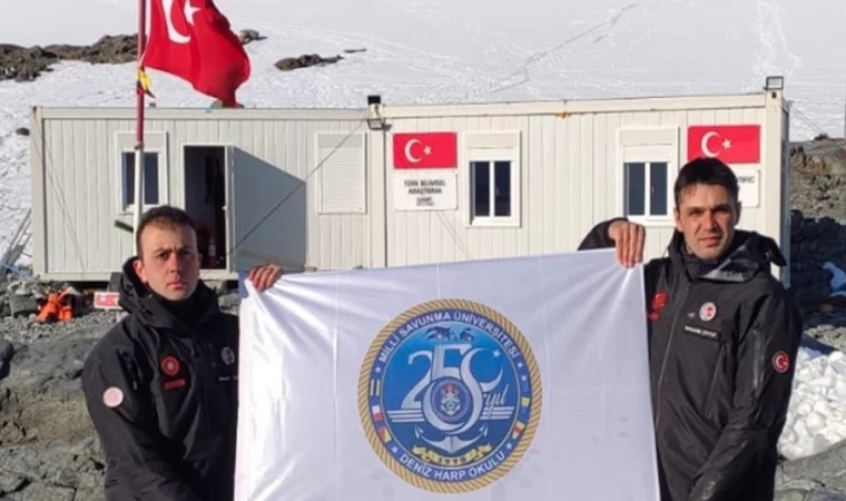 Antarktika Bilim Seferi'nde, "Deniz Harp Okulunun 250'nci Kuruluş Yıl Dönümü" logosu da sergilendi.
