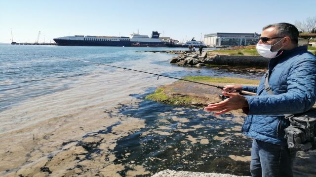 Deniz kenarında balık tutan Hasan Dursun, "Bilimsel bir karşılığı vardır mutlaka. Ama nihayetinde güzel bir görüntü değil. Biz bir de burada birkaç balığın öldüğünü gördük. Normalde şu an çinekop ve sarıkanatın kıyıya gelme dönemi ama burada arkadaşlarla şoklanmış balıklar gördük. Sarıkanatın şoklanıp kıyıya geldiği görülmüş bir şey değildir" şeklinde konuştu.
