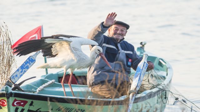 Türkiye’yi Avrupa Leylek Köyleri ağında temsil eden tek köy olan Bursa’nın Karacabey ilçesine bağlı Eskikaraağaç Leylek köyünde yaşanan balıkçı ile leyleğin dostluğu, milyonlar tarafından ilgiyle takip edilen hikayeye dönüştü. Geçtiğimiz 9 yılda her göç zamanı geldiği köyde, Adem Yılmaz’ın kayığına konan ‘Yaren’, bu yıl 10’ncu kez geldi. Yaren Leylek'in 10’ncu kez gelişi, köylüler tarafından sevinçle karşılandı. Geçen yıllara göre 3 gün geç gelen Yaren Leylek, sabah saatlerinde balıkçı Adem Amcanın kayığına konarak, balık yedi. O anlar ise Doğa Fotoğrafçısı Alper Tüydeş tarafından fotoğraflandı.
