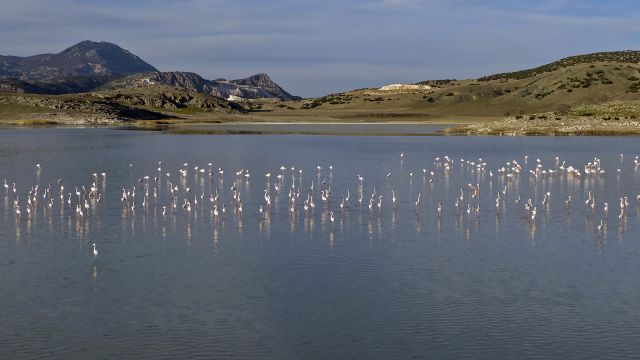 Burdur’un Yeşilova ilçesindeki Yarışlı Gölü'nün misafirleri binlerce flamingo, yaz aylarını geçirmek üzere göle geldi.