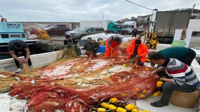 Zonguldak'ta balıkçının ağlarına 2 ton sarıkanat takıldı