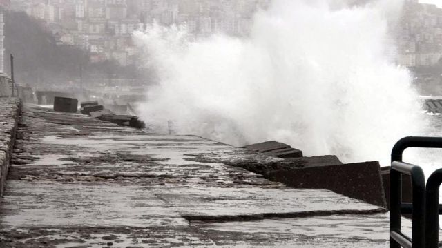 Zonguldak Limanı'nda kayalıklara çarparak yaklaşık 5 metre yükselen dalgalar, zaman zaman mendireği aşarak liman içine kadar ulaştı. Kentte balıkçı tekneleri, olumsuz hava koşulları nedeniyle denize açılamadı.