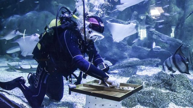 "Akvaryum Adam" rekor için köpek balıklarının arasında çalıştı