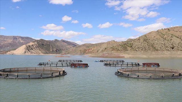 Alkumru Baraj Gölü'nde kafeslerde yılda 200 ton alabalık yetiştiriliyor