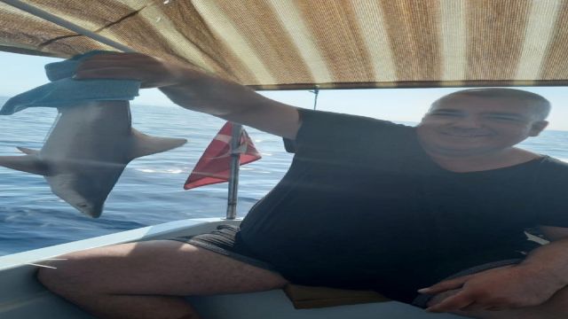 Serik'te bir amatör balıkçı, ağlarına takılan köpek balığı yavrusunu kurtararak yeniden denize bıraktı.