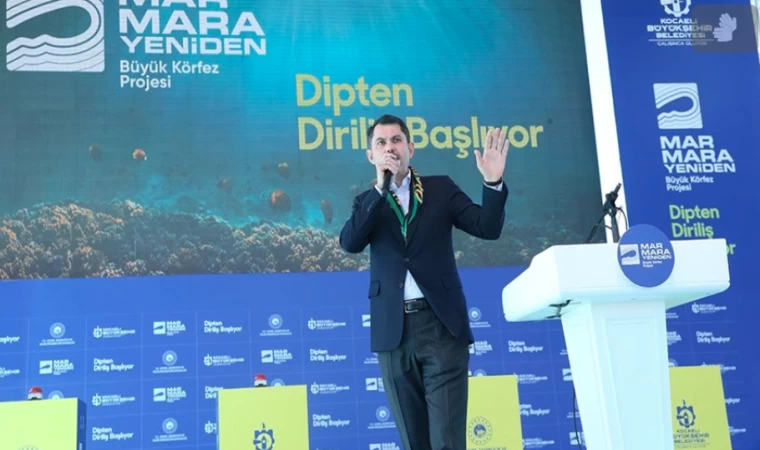2021'deki müsilaj (deniz salyası) sorunuyla başlattıkları seferberlik kapsamında Marmara Belediyeler Birliği ve Kocaeli Büyükşehir Belediye Başkanı Tahir Büyükakın ile ortak çalışma yürüttüklerini anlatan Kurum, "Bugün ilk etabını başlattığımız ve 120 milyon dolarlık, yaklaşık maliyeti 2,5 milyar lirayı bulan Kocaeli Körfezi'mizdeki yaklaşık 8 milyon ton dip çamurunu temizliyoruz. Bu dip çamuru arkadaşlar, düşünün, içinde canlılarımız, balıklarımız yaşamaya gayret ediyor. Kenardaki çamurun bile kokusundan rahatsız oluyoruz." diye konuştu.