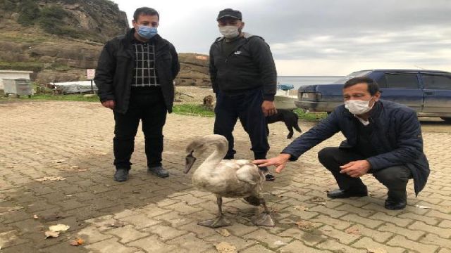 Bartın'ın Kurucaşile ilçesinde bir balıkçının tüfekle ateş açması sonucu ayaklarından yaralanan kuğuyu köylüler kurtardı. Doğa Koruma ve Milli Parklar Şube Müdürlüğü ekiplerine teslim edilen kuğu, tedaviye alındı.