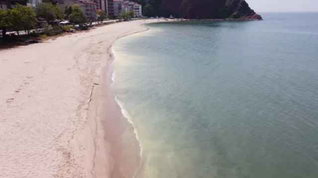 Çakraz'da yaklaşık 1 kilometre uzunluğundaki sahilde sabah saatlerinde renk değişimi görüldü.