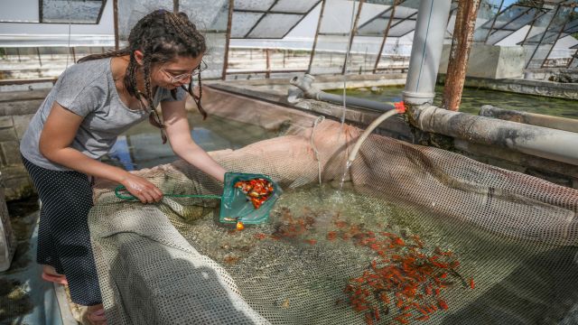 Antalya’da çiftçi Ali Kaçak, 11 yıldır ailesiyle birlikte cam sera içine kurduğu üretim havuzlarında süs balığı üretip yetiştirerek satıyor. Ali Kaçak, sebze üretimini bıraktıktan sonra oğlu Kemal ve kızı Elif ile birlikte cam serada süs balığı üretimine başladı.