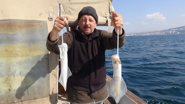 "Kalamarı, kalamar zokası dediğimiz sahte karides görünümünde iğneli yemlerle tutuyoruz. Hava şartlarına göre, akıntının durumuna göre kullandığımız rapalaları değiştirmemiz gerekiyor. Balık, sürekli aynı zokaya gelecek diye bir durum yok. Bu, günlük değişime uğruyor. Kalamar suyun altında önündeki yeme göre değişkenlik gösteriyor. Biz de bunları deneme yanılma yöntemiyle çözmeye çalışıyoruz. Kalamar balığının kilosu geçen senelerde 60- 70 liraya satılırken, bu sene 80- 90 liraya, hatta porsiyonluk dediğimiz halkalara bölündüğünde tam ideal boya ulaşacak kalamarların 95 liraya satıldığı oluyor.”