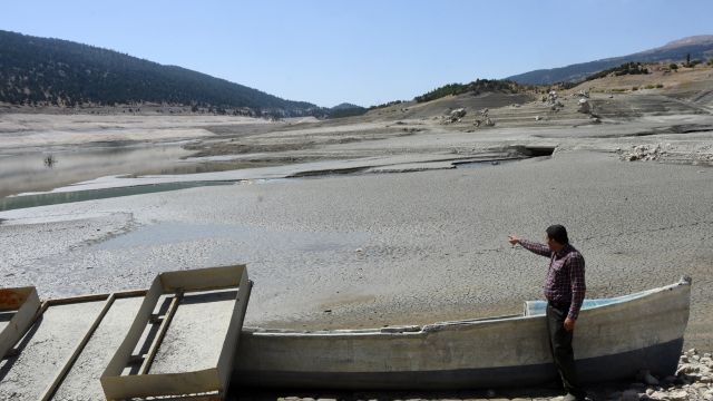 Antalya’nın Kaş ilçesine bağlı Gömbe Yaylası'ndaki Çayboğazı Barajı'ndaki su dip seviyelere indi. Büyük bölümü tarlayı andıran baraj ile ilgili Gömbe Mahallesi Muhtarı Süleyman Kocakehya "İlk kez bu kadar kurak bir dönem yaşadık" dedi.