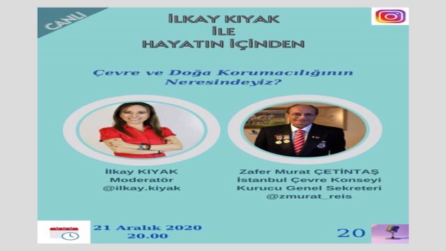 21 Aralık 2020 Pazartesi günü saat 20:00 ‘de Instagram üzerinden “İlkay Kıyak ile Hayatın İçinden” programına konuk olarak yer alacak olan Zafer Murat Çetintaş, İlkay Kıyak ile “Çevre ve Doğa Korumacılığının Neresindeyiz?” teması üzerinden Çevre ve Doğa sorunları ve koruma konularında görüşlerini açıklayacaktır.