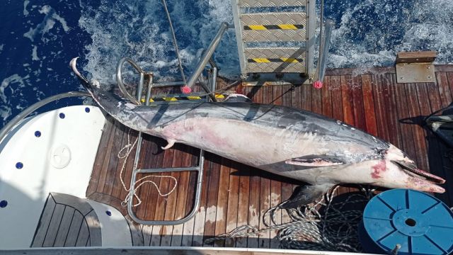 Muğla’nın Datça ilçesi açıklarında, tur teknesi ile koyları gezen tatilciler tarafından ölü yunus bulundu. Deniz yüzeyinde kokmuş ve yer yer çürümeye yüz tutmuş olarak bulunan ve tekneye alınan yunusta, kesici alet izine rastlanılmadığı belirtildi.