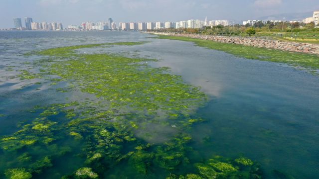 Halk arasında "deniz marulu" olarak da bilinen deniz yosunları, özellikle iç körfezin güneyinde İnciraltı kıyılarındaki Çakalburnu Lagünü'nü yeşile bürüdü.