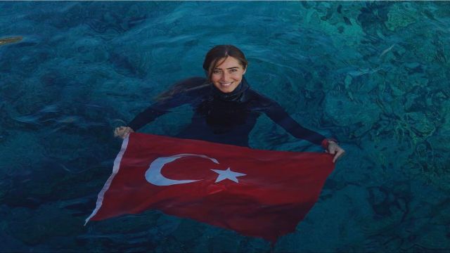 Antalya'nın Kaş ilçesinde paletsiz değişken ağırlık kategorisinde tek nefeste 100 metreye dalarak dünya rekoru kıran milli sporcu Şahika Ercümen için bir tören düzenlendi.
