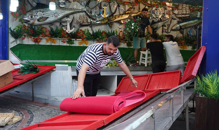 Balık pazarı esnafından Yusuf Çimen, AA muhabirine, temizlik ve dekor işlerini yaptıklarını söyledi.