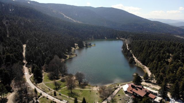 Gölcük Tabiat Parkı, baharla birlikte ayrı bir güzelliğe büründü. Tabiat parkındaki karlar eridi ve yeşilin tonları ortaya çıktı. Parka gelen ziyaretçiler, göl çevresinde yürüyüp, doğa ile iç içe gün geçirdi. Hafta sonu kısıtlamaları nedeniyle hafta içi tercih edilen Gölcük Tabiat Parkı'na gelen tatilciler, eşsiz manzaranın keyfini çıkardı. Tabiat Parkındaki manzara, dron ile havadan görüntülendi.