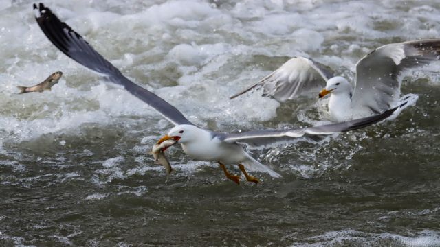 Bölgedeki martılar da göç boyunca tatlı sulardaki balıkları avlayarak besleniyor.