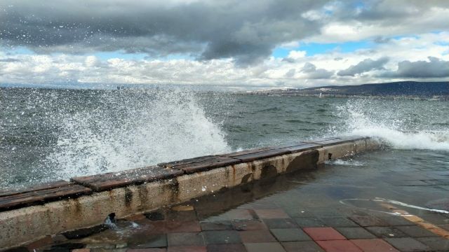 Sahilde dalgalar oluştu. Hava sıcaklığının mevsim normalleri üzerinde seyretmesiyle vatandaşların vakit geçirmeyi tercih ettiği Kordon Boyu boş kaldı.