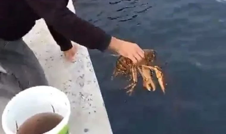 İzmit Körfezi'nde avlanan bir balıkçı, oltasına takılan yaklaşık 3 kilogramlık ıstakozu tekrar denize bıraktı.