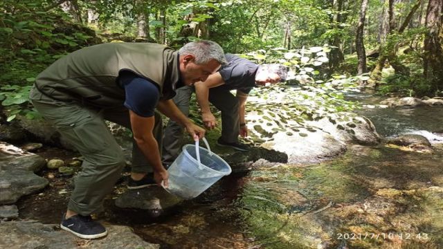 Kazdağları'nda derelere yavru kırmızı benekli alabalıklar bırakıldı
