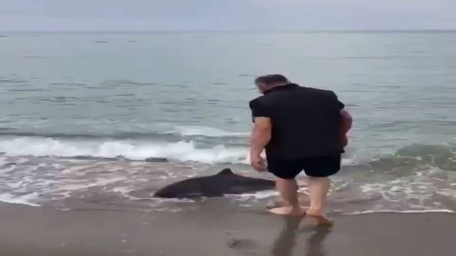 Sinop’un Türkeli ilçesinde araçla yoldan geçerken kıyıya vuran yunusu fark eden Mehmet Ersoy, onu denize ulaştırarak kurtardı.