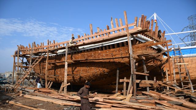 Pakistanlı marangozlar balıkçı teknesi inşa ediyor
