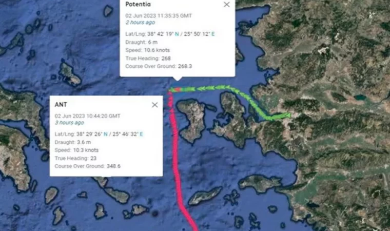 Sakız Adası'nın 9 mil kuzeybatısında 13 Türk personeli bulunan yüksüz ANT isimli gemi ile Singapur bayraklı POTENTIA isimli gemi çatıştı.