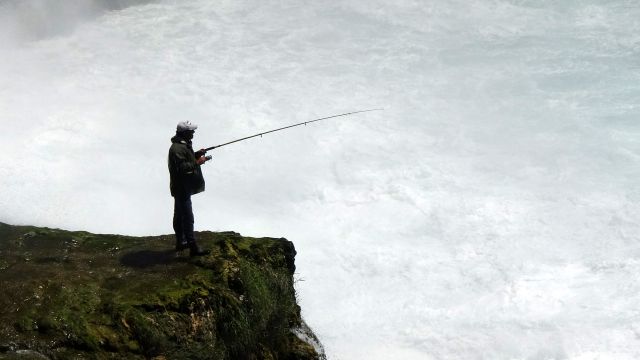 Şelale altında tehlikeli balık avı