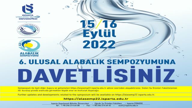 Isparta Uygulamalı Bilimler Üniversitesi, Eğirdir Su Ürünleri Fakültesi & Su Ürünleri Uygulama ve Araştırma Merkezi tarafından düzenlenecek olan 6. Uluslararası Alabalık Sempozyumu için bildiri gönderim süresi 28 Ağustos tarihe kadar uzatıldı.