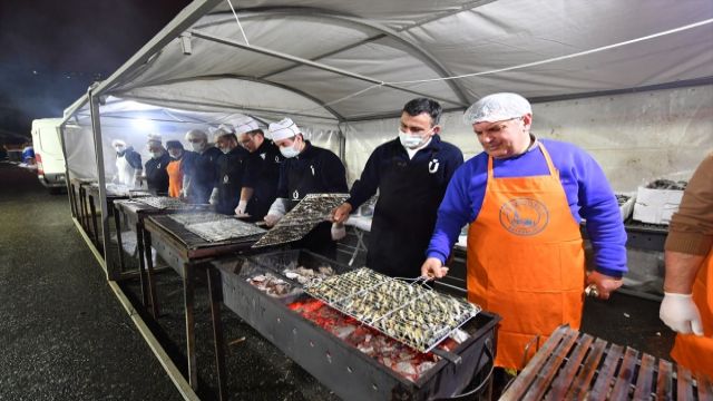 Karla mücadele çalışmalarında görev alan ekiple balık ziyafetinde buluşan Üsküdar Belediye Başkanı Hilmi Türkmen, mesai arkadaşlarına teşekkür etti.