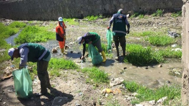 Van Büyükşehir Belediyesi, Van Gölü’ne dökülen derelerde temizlik çalışması yaptı.