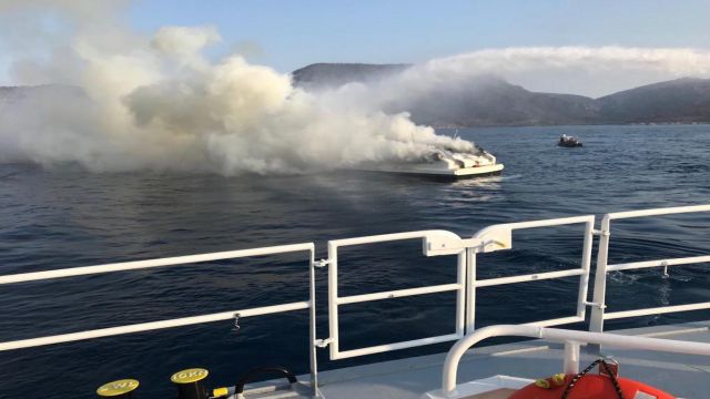 Muğla’nın Bodrum ilçesi açıklarında alev alan teknedeki 5 kişi, Kıyı Emniyeti ekiplerince kurtarıldı. Tekne, yangın sonrasında battı.