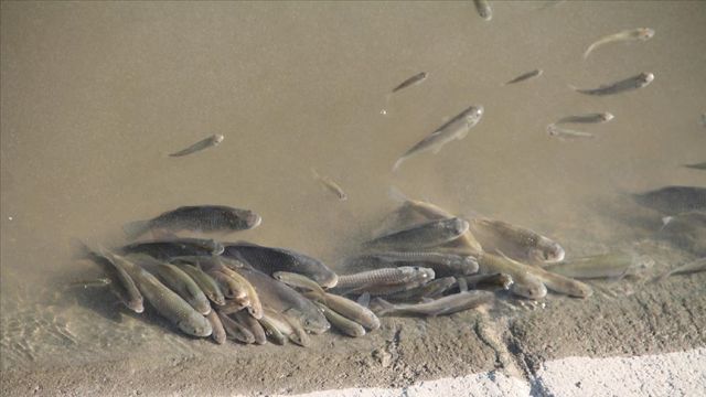 Irmağın, Kızseki mevkiinden geçen bölümünde, suyun renginin değişmesinin ardından yüzeye çok sayıda balık çıktı.