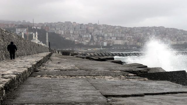 Zonguldak’ta etkili olan sis ulaşımı aksatırken, şiddetli rüzgar nedeniyle denizde oluşan dalgalar mendireği aştı.